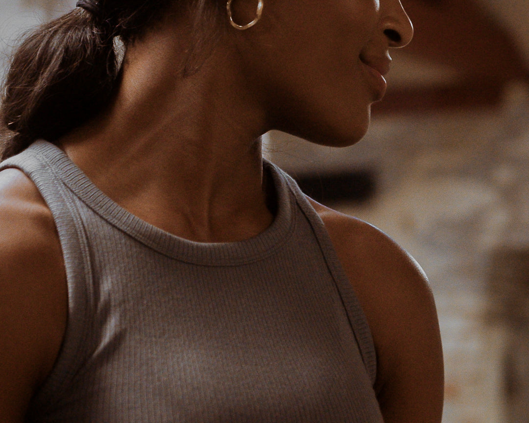 Nira wears the Ribbed Recovery Tank in Cool Black.