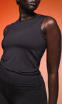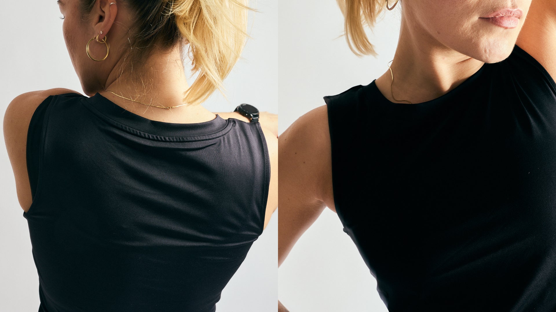 Wide crew neckline and thick straps for easy layering or standalone use.