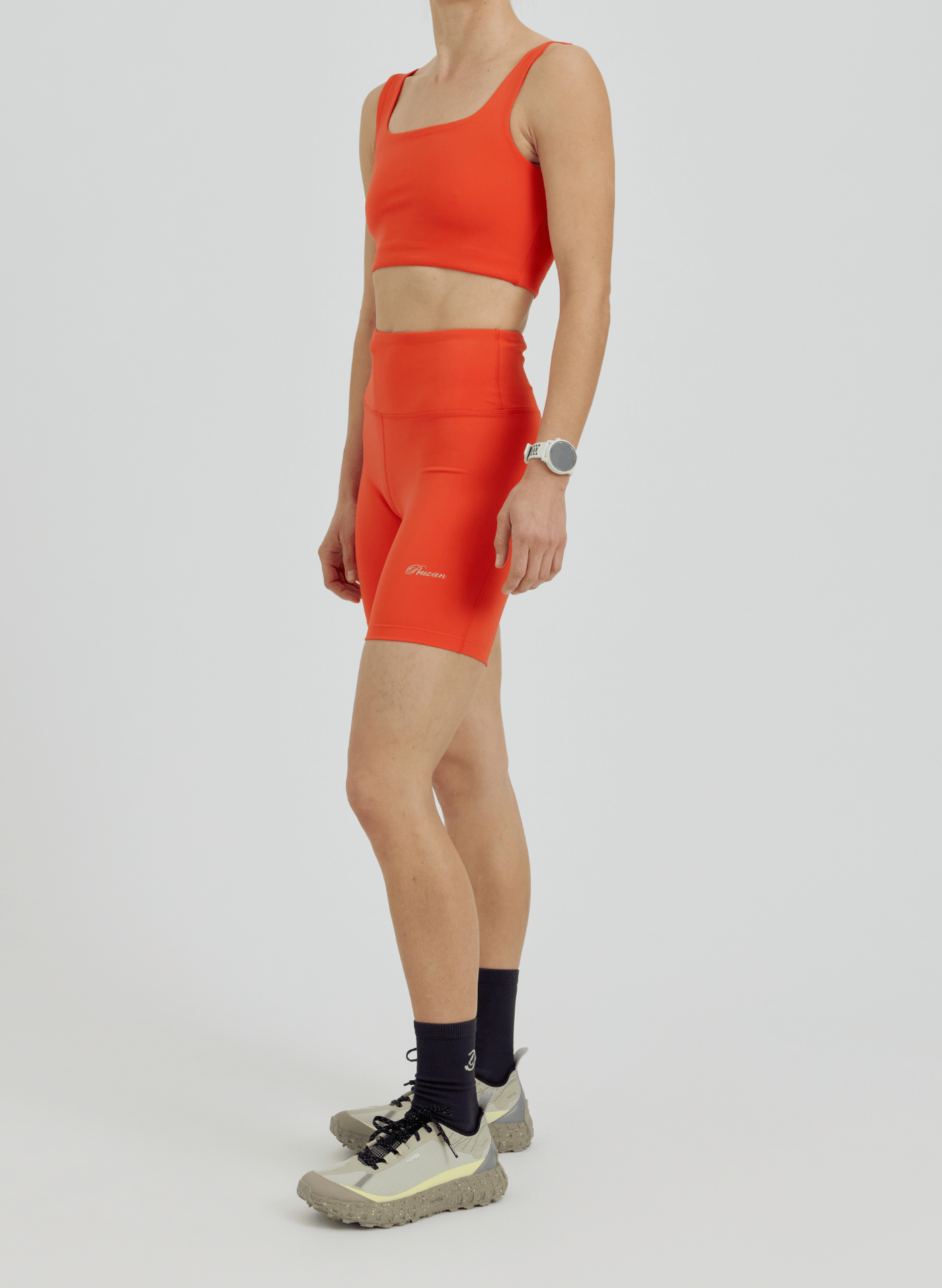Supportive, sweat-wicking fitted shorts designed to stay firmly in place through training and race day. The Fitted 6" Shorts are made from our signature recycled performance fabric with a sculpting high-rise waistband and multiple storage pockets, delivering comfort, coverage, and confidence across every mile. Featured in Grenadine, a vibrant poppy red.