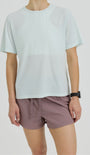 An ultra soft, featherlight running T that offers a barely there feel. Featured in Mist, a luminous pale aqua.