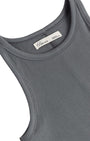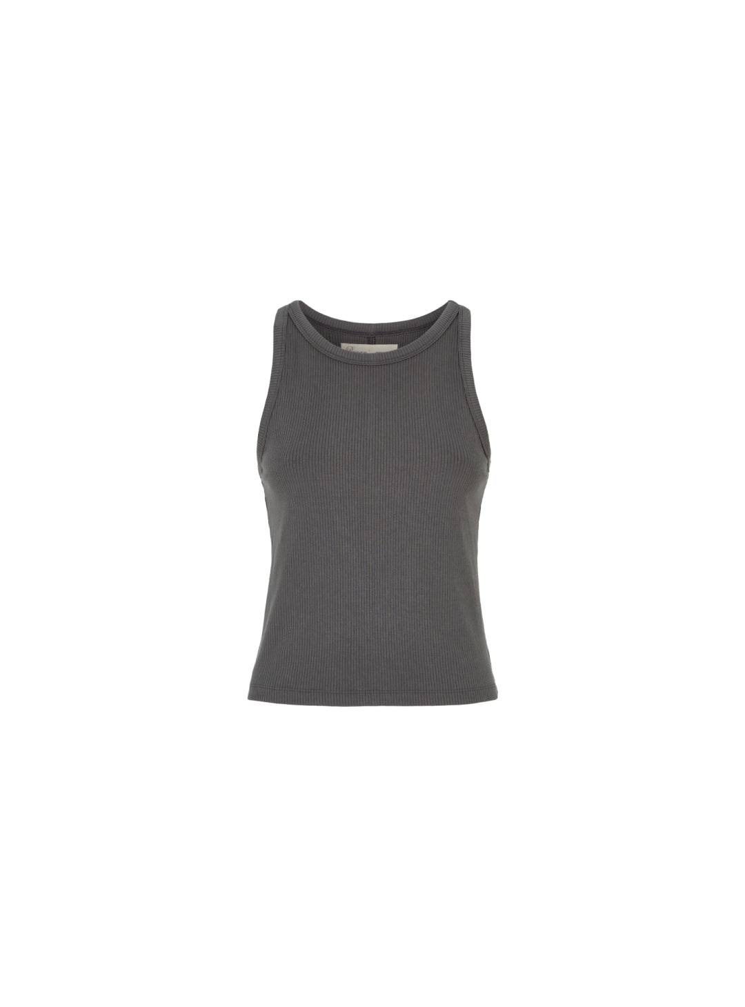 A sleek halter-style tank designed for recovery, low-impact movement, and all-day wear. Featured in Charcoal, a neutral mid-tone grey.