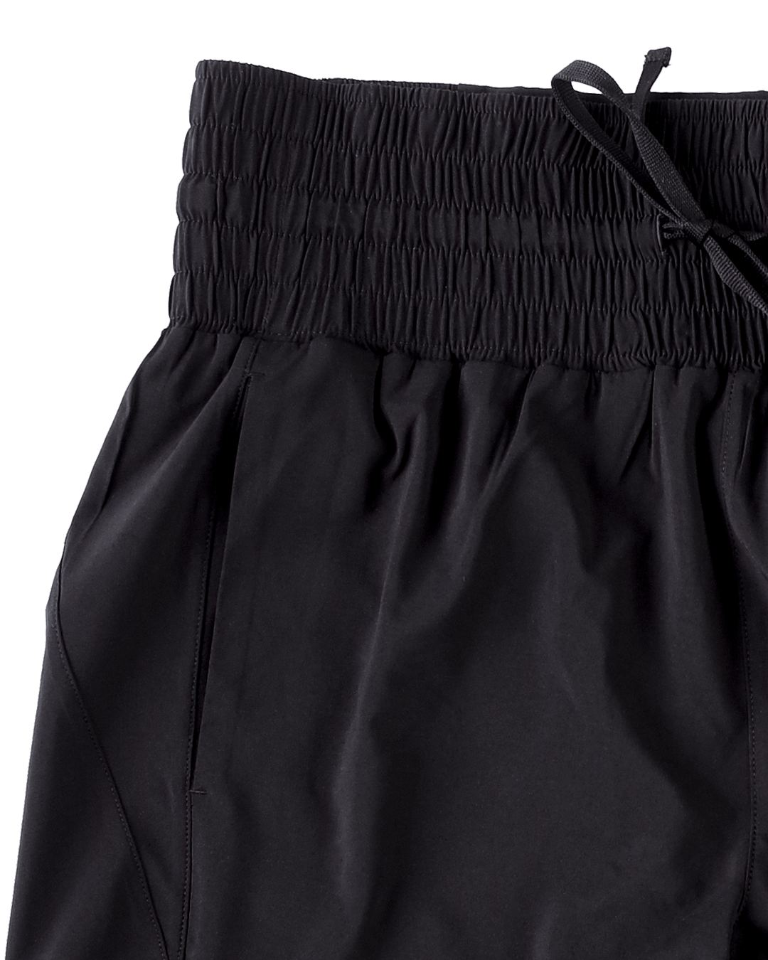 The shorts that started it all. The Curved fit follows the female form with a shorter, tapered leg. Made from recycled materials and perfect for a marathon or every day wear. A wide cinched waistband provides maximum stability during all movement, making you feel secure. Bring your phone, gels, and keys all with you via discreet storage pockets throughout. Weightless feeling fabric for unrestricted mobility. Featured in Onyx, a cool tone black.