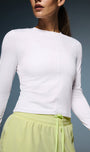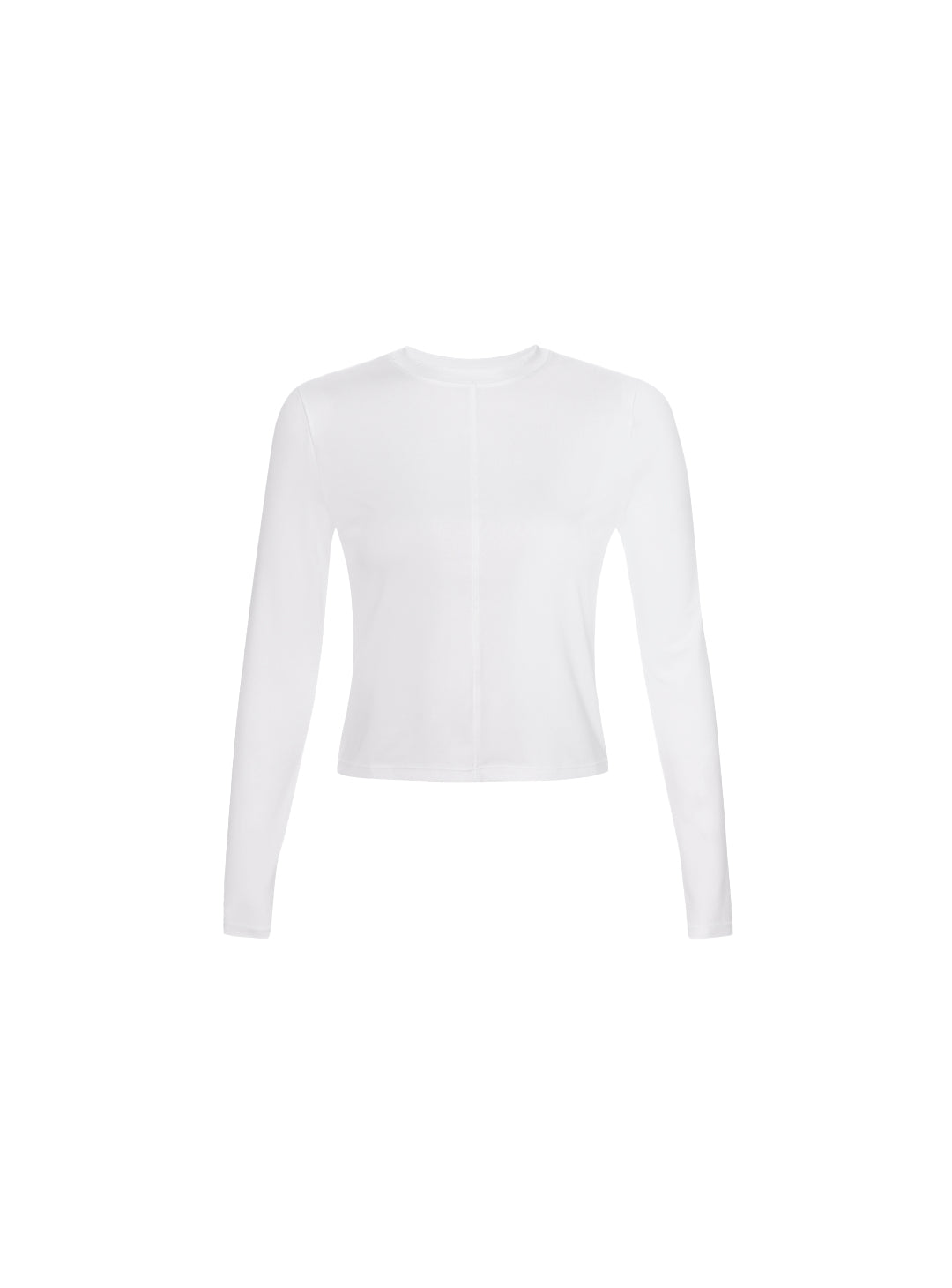 A buttery-soft, form-fitting long sleeve designed for long distance, easy layering, and brisk-weather runs. Featured in Salt, a luminous, crisp white.