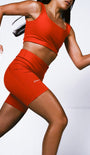 Supportive, sweat-wicking fitted shorts designed to stay firmly in place through training and race day. The Fitted 6" Shorts are made from our signature recycled performance fabric with a sculpting high-rise waistband and multiple storage pockets, delivering comfort, coverage, and confidence across every mile. Featured in Grenadine, a vibrant poppy red.