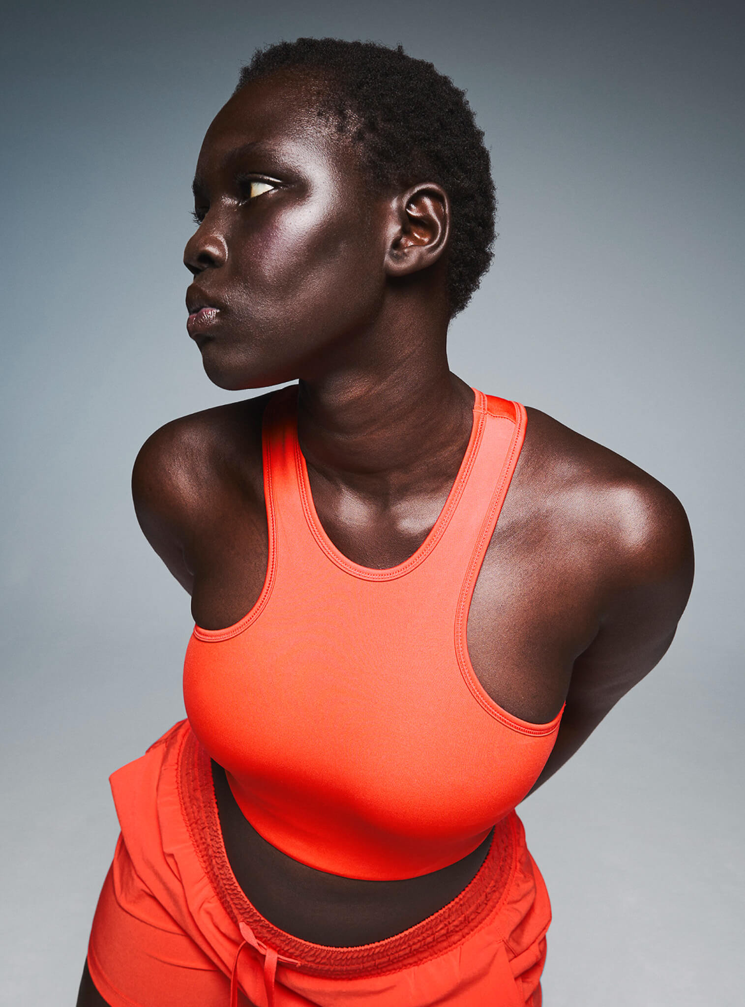 Designed for high elegance and high impact. A modern update to the racerback sports bra emphasizes balance with twin front and back silhouettes. Made from recycled materials with curved hemlines to accentuate and conceal along your torso and bust in all the right places while logging heavy miles. Featured in Grenadine, a vibrant poppy red.