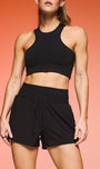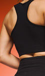 Designed as an elegant staple. The Hourglass Bra is a modern update to the racerback sports bra. Featured in Onyx, a cool toned black.