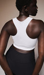Designed as an elegant staple. The Hourglass Bra is a modern update to the racerback sports bra. Featured in Salt, an illuminating bright white.