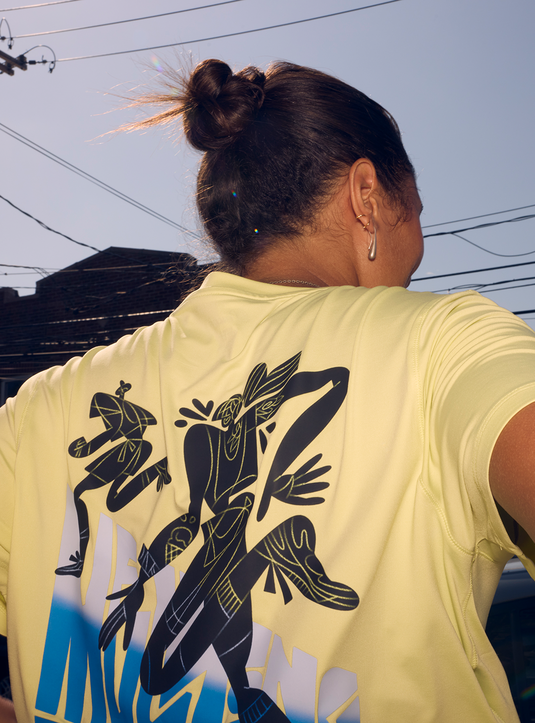 This limited edition T shirt honors our first ever Melting Miles event in NYC on August 3rd. Featuring Melting Miles! Artwork by Meredith Schomburg. Read more about Meredith's Process here. This print is featured on the Super Soft Marathon T Shirt in Citron. Maximum comfort for maximum miles. Made from recycled materials. A classic silhouette in any athlete's wardrobe, Our Marathon T-shirt is at once substantial as it is soft.