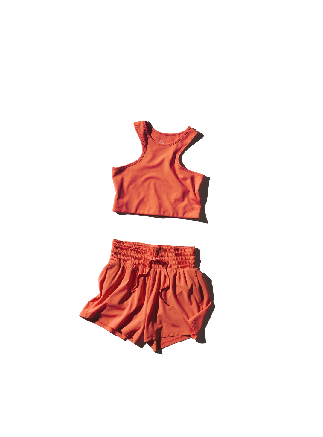 • Hourglass Sports Bra: A racerback bra with curved hemlines for support and elegance, crafted for high impact and long miles.