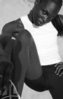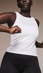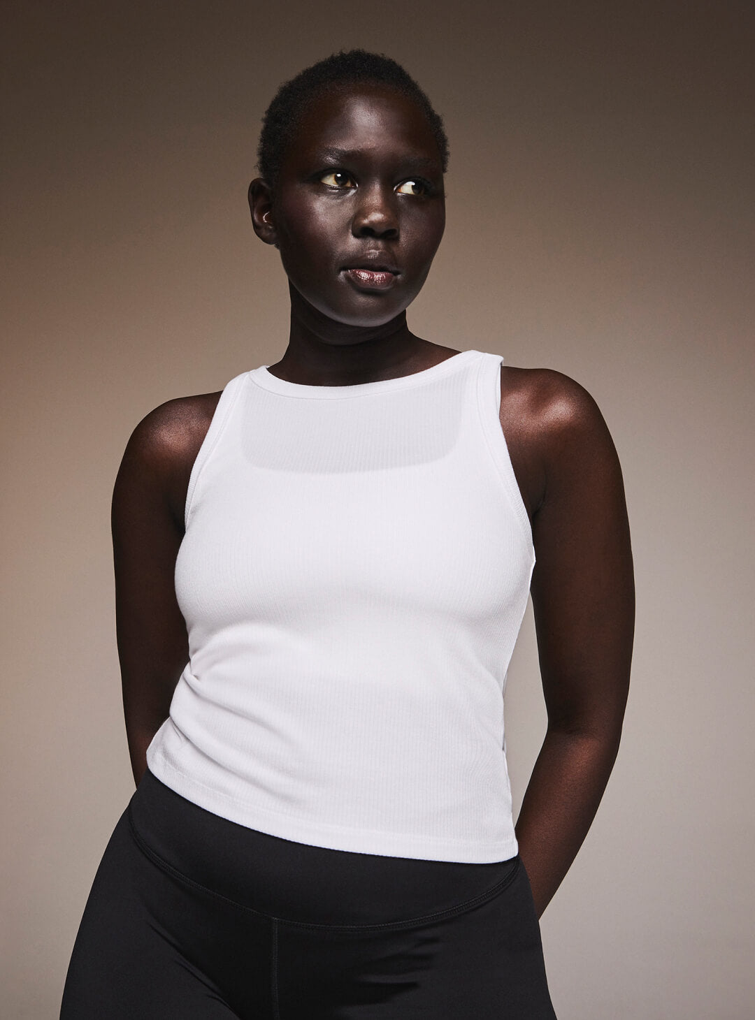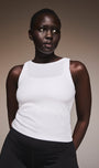 A sleek halter-style tank designed for recovery, low-impact movement, and all-day wear. Featured in Pearl, a soft, luminous off-white.
